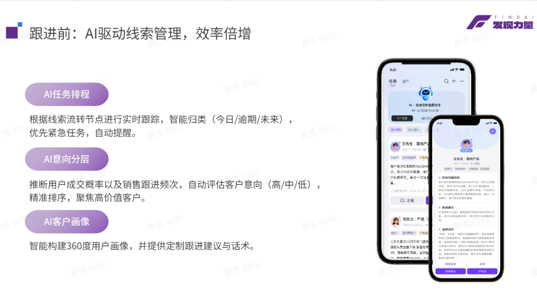 当金融保险行业的竞品都在用 AI 优化销售链路、抢占高潜客户,若还依赖传统人工筛选线索、凭经验沟通,只会陷入 “成本高、转化低” 的被动局面 —— 深谙行业痛点,FindAI 自主研发企业级营销智能体「闪电 AI销售助手」,深度聚焦企业营销、获客、转化等业务场景,用AI探索全新解法,有效撬动销售效率与价值的跃升,让AI真正成为业务利器。