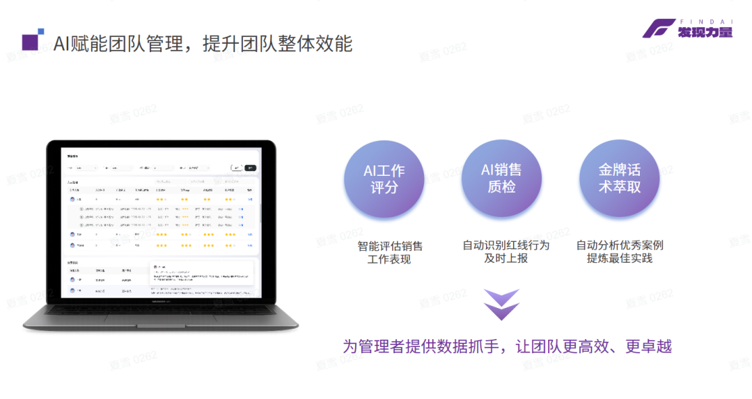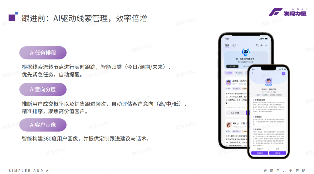 闪电 AI 销售助手通过 AI 赋能销售全流程,深度融入销售全生命周期。它通过承担线索整理、沟通记录、话术生成等重复性、低价值工作,让销售将时间精力投入到高价值的客户互动中,实现效率提升;同时,通过精准的客户洞察、实时的话术支持、经验的沉淀传承,帮助销售从 “经验驱动” 转向 “数据驱动”“智能驱动”,提升专业能力。