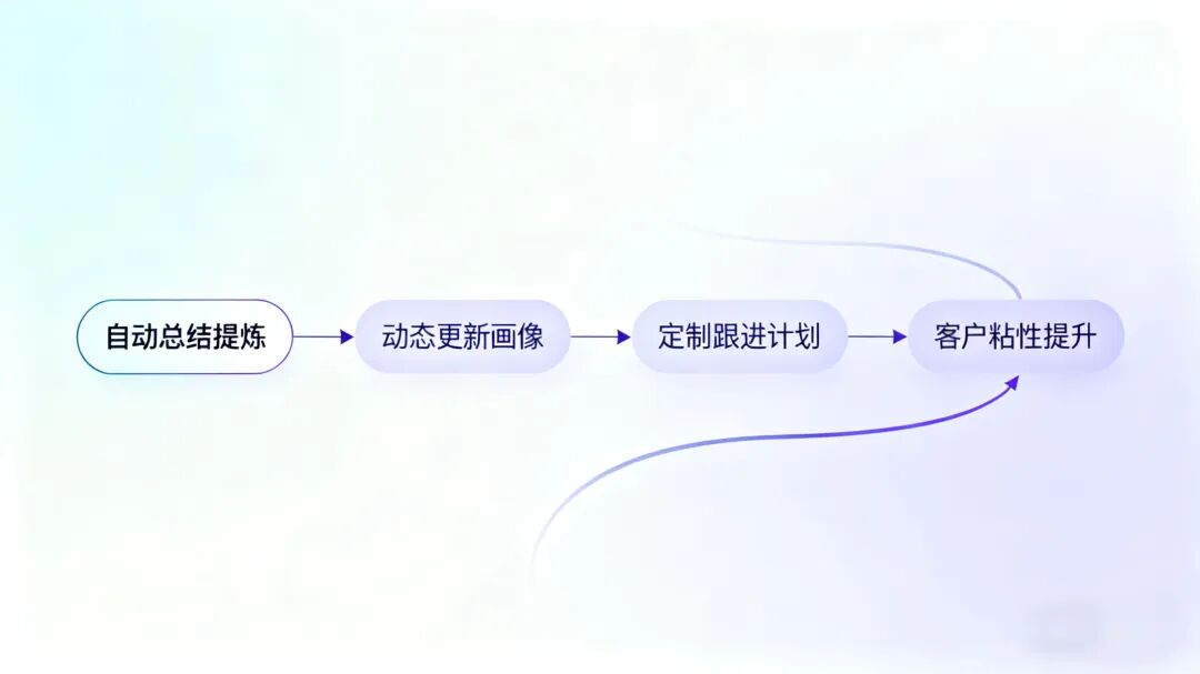 自动总结提炼:无需手动记录,AI 自动抓取沟通核心内容,生成简洁明了的沟通摘要,精准捕捉客户异议、核心顾虑、关键承诺等信息,省去繁琐整理时间;